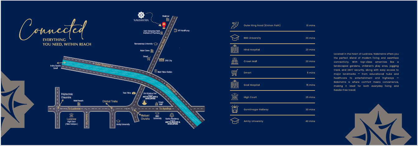 Nakshatra is brought to you by Aditya Builder & Developers, a reputable name in Lucknow’s real estate market known for its unwavering commitment to quality, transparency, and timely delivery.